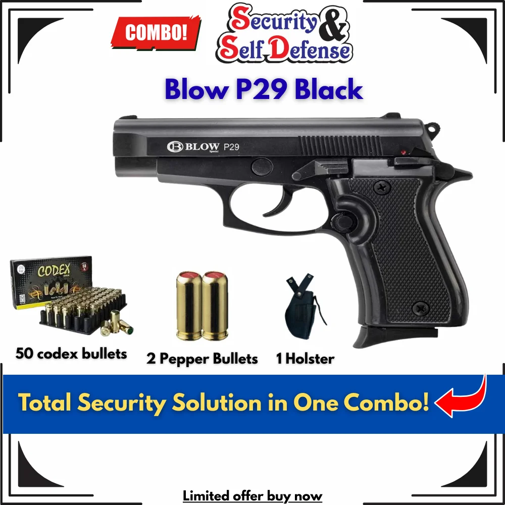 Blow P29 Black with 50 Codex Bullets, 2 Pepper Bullets & 1 Holster